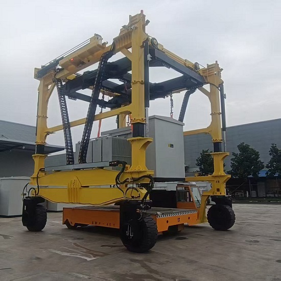 跨運(yùn)車(chē)廣泛應(yīng)用于港口、碼頭、物流中心等需要高效集裝箱處理的場(chǎng)所。在港口,它負(fù)責(zé)將船上的集裝箱快速卸載到堆場(chǎng),或?qū)⒍褕?chǎng)中的集裝箱裝載到運(yùn)輸車(chē)輛上;在物流中心,則用于集裝箱的內(nèi)部轉(zhuǎn)運(yùn)和堆存。其堆碼層數(shù)通??蛇_(dá)2-3層,甚至更高,有效節(jié)省了空間資源。